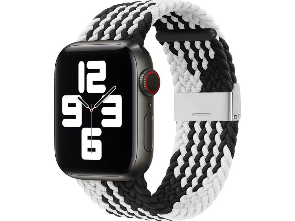 Pletený látkový řemínek pro Apple Watch 38 / 40 / 41 mm - černý a bílý