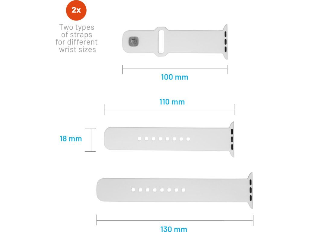 - dvě velikosti řemínků v balení pro různé obvody zápěstí