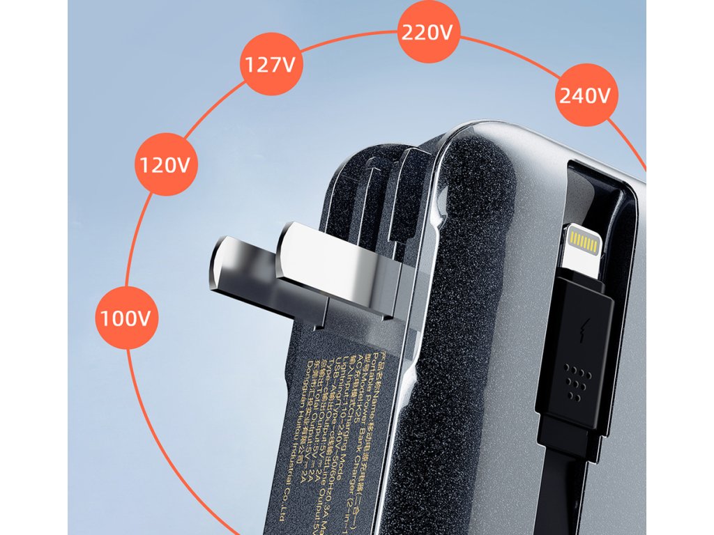 - Vestavěné kabely – Pohodlí a úspora místa: Dudao K25 je vybaven vestavěnými kabely typu C a L, takže s sebou nemusíte nosit další kabely. Získejte plnou mobilitu – nikdy nezapomeňte doma na kabel!