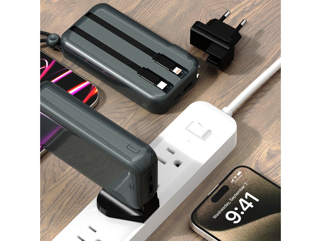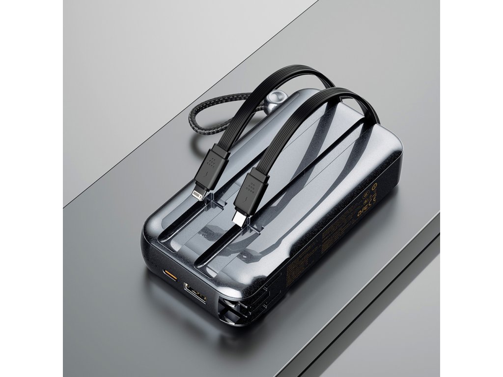Nabíječka Dudao K25 má vestavěné kabely USB-C a Lightning, takže si s sebou nemusíte tahat další kabely. Jedná se o praktické řešení, které šetří místo v tašce a znamená, že máte vždy po ruce ten správný kabel k nabíjení zařízení. Není třeba hledat správné kabely v kufru!