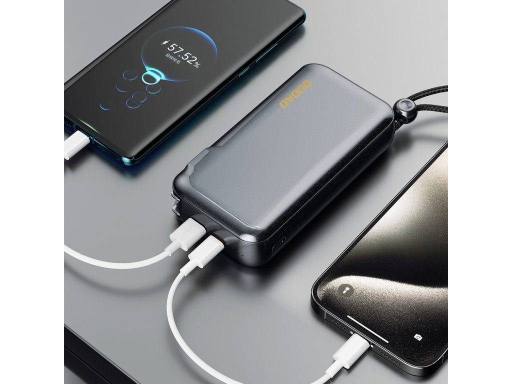 Nabíječka Dudao K25 kombinuje funkčnost síťové nabíječky a powerbanky v jednom zařízení. Můžete ji používat doma k nabíjení přes síť a na cestách ji jednoduše proměníte v mobilní powerbanku. To šetří místo a máte vždy u sebe zařízení, které vám umožní nabíjet všechna vaše zařízení bez nutnosti používat několik samostatných příslušenství.