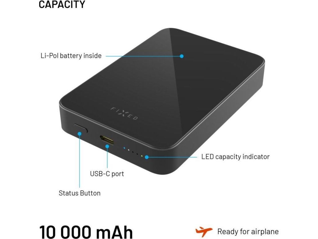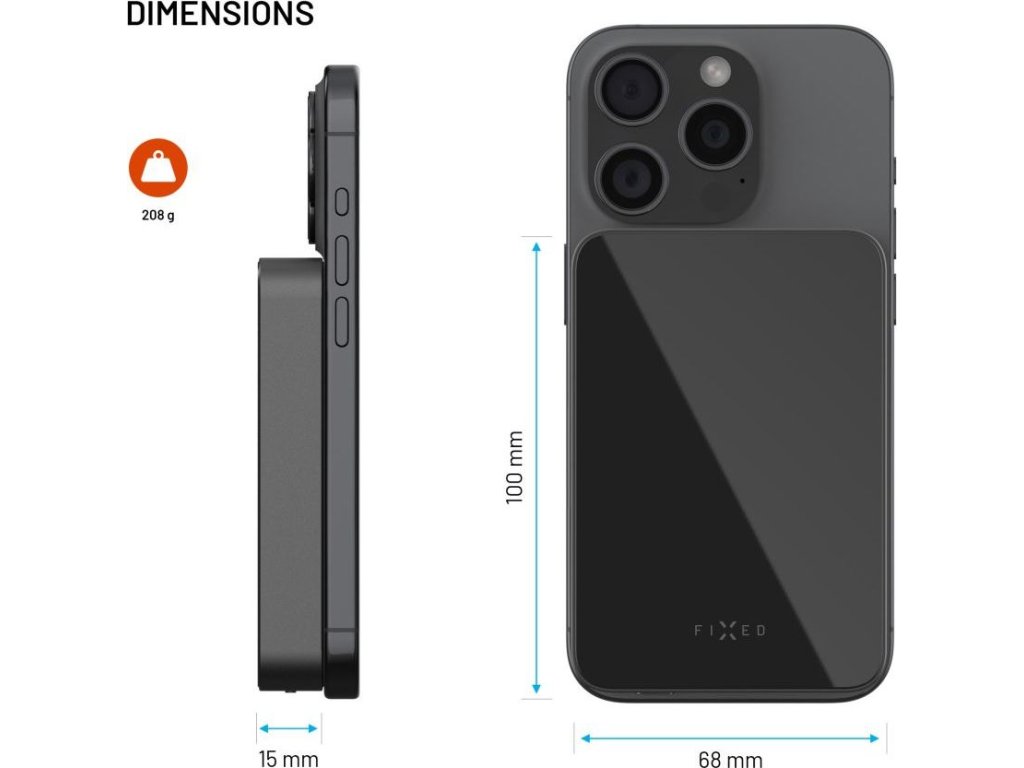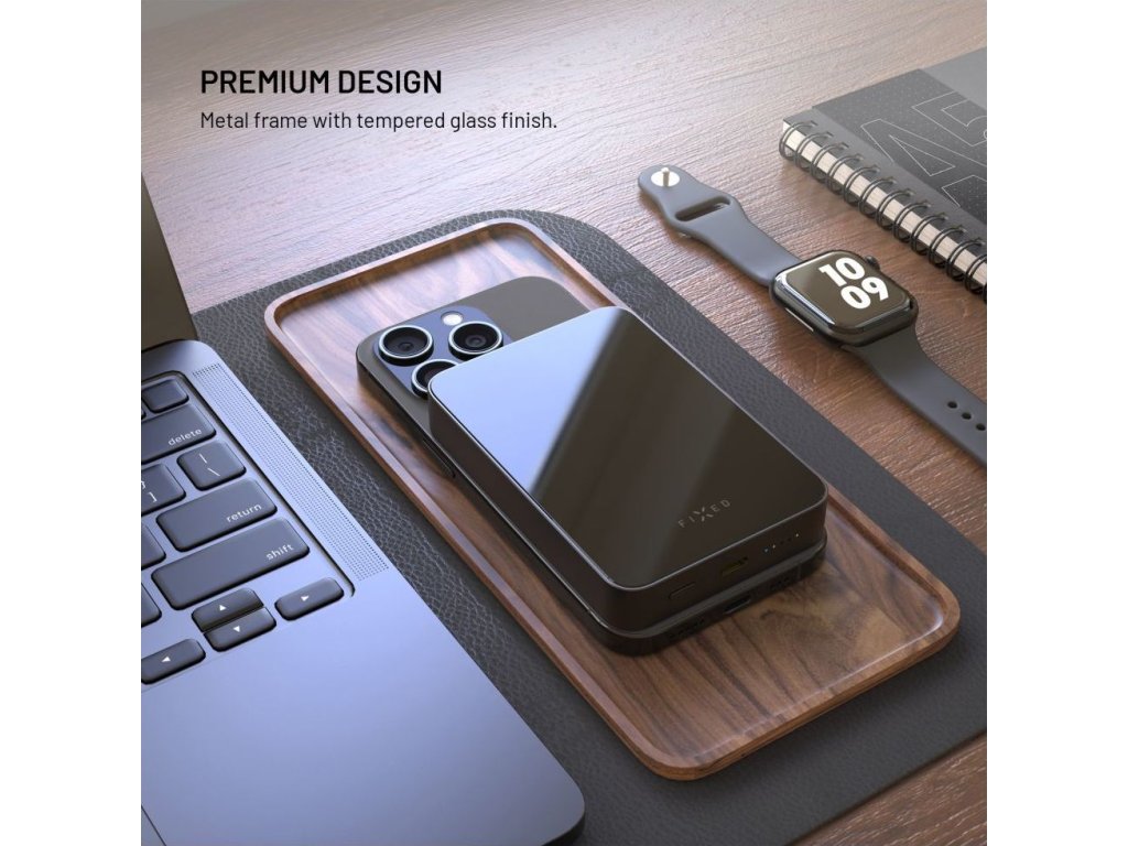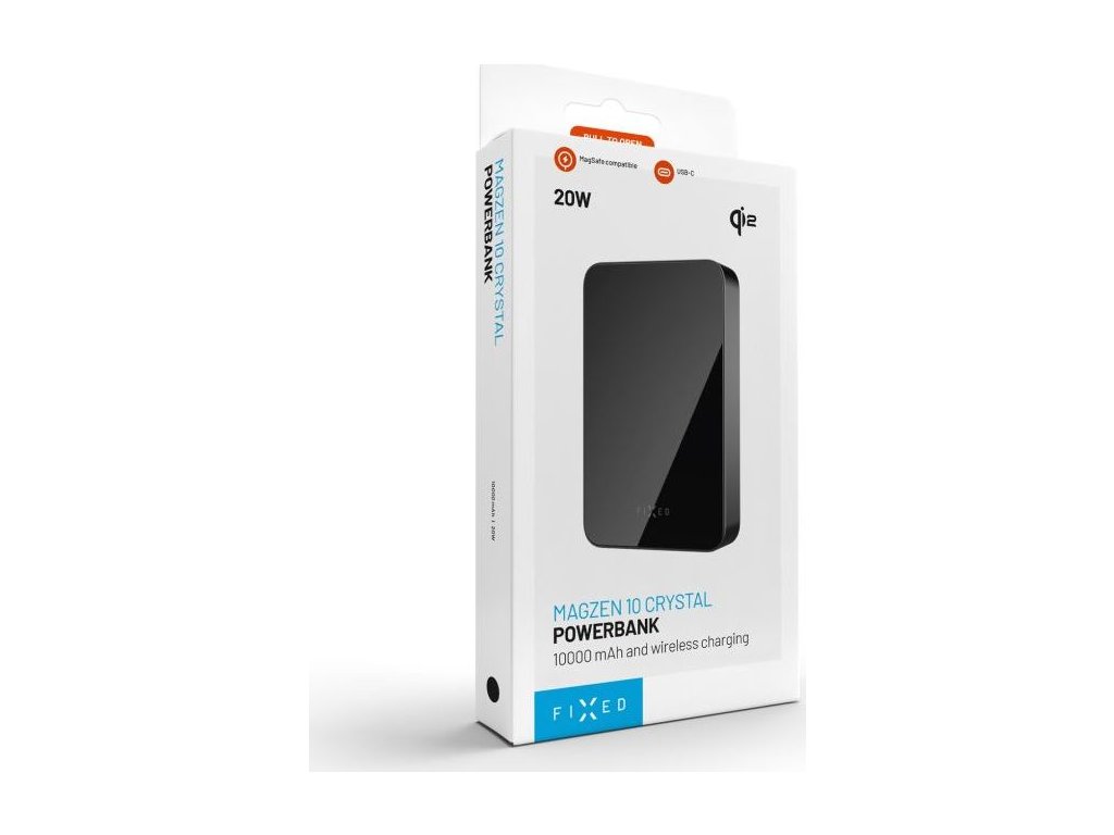 Powerbanka FIXED MagZen 10 Crystal s bezdrátovým nabíjením se standardem Qi2 a podporou MagSafe, 10 000 mAh, černá
