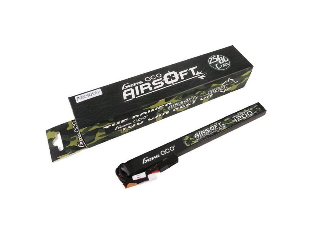 Lipo baterie Gens ace 25C 1200mAh 3S1P 11,1V Airsoft Gun s konektorem mini Tamiya je navržena speciálně pro napájení airsoftových zbraní. Tato baterie je navržena s ohledem na výkon a spolehlivost a nabízí kapacitu 1200 mAh a napětí 11,1 V, což zajišťuje stabilní napájení vašeho zařízení.