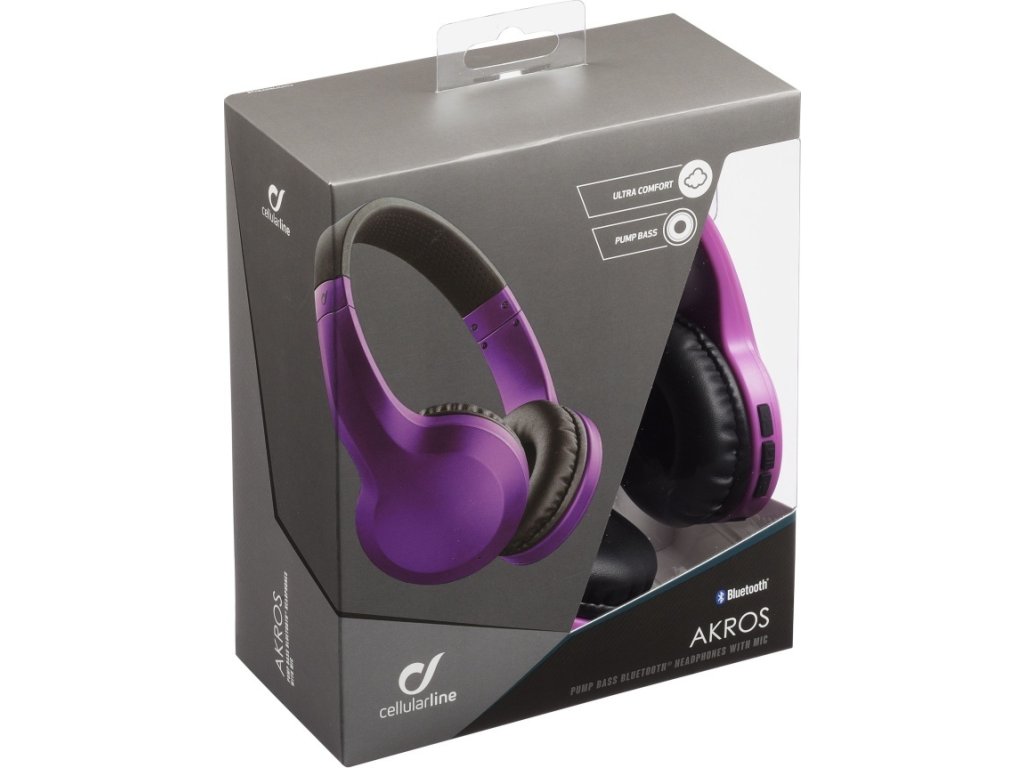 Bezdrátová sluchátka CELLULARLINE AKROS, AQL® certifikace, extra basy, fialové