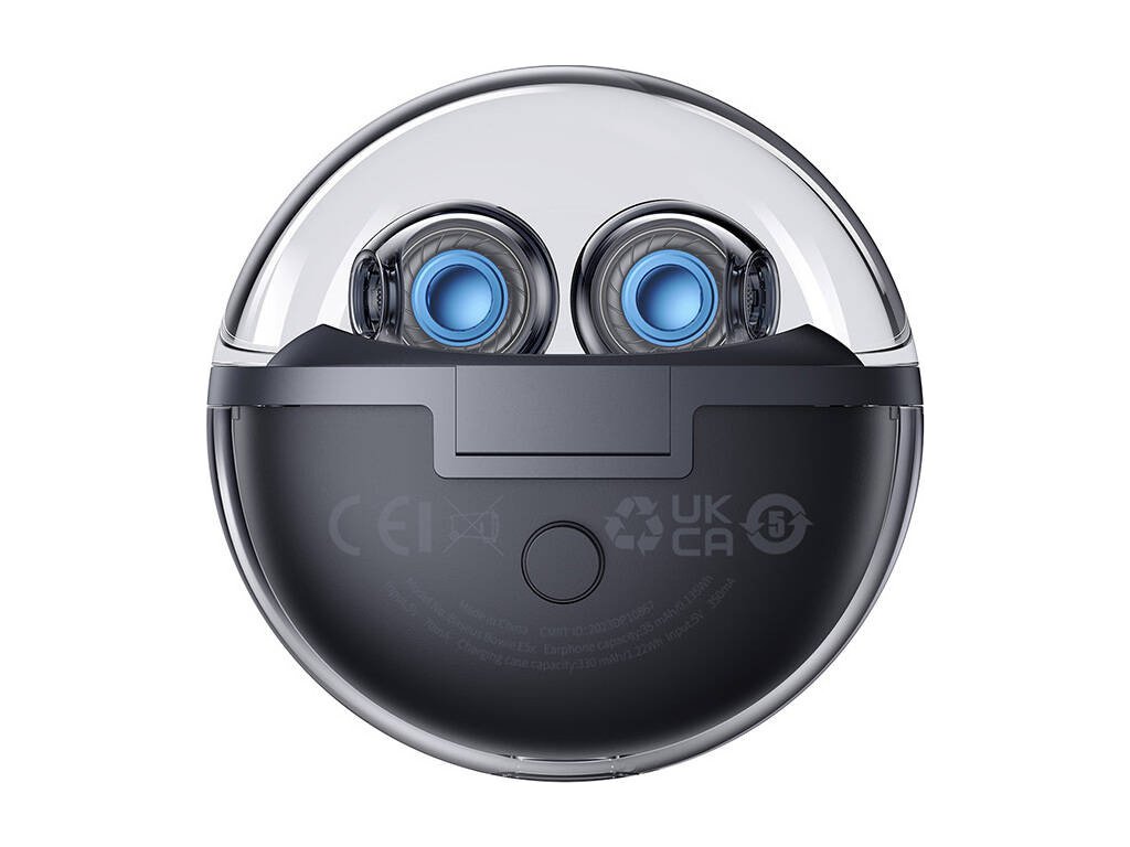 Bowie E5x jsou sluchátka s moderním designem dosaženým díky designu, který využívá průhlednou kopuli k zobrazení vnitřní elektroniky a vypadá, jako by kapsa na sluchátka uvnitř levitovala. Sluchátka samotná mají také průhlednou kopuli, pod níž je elegantní ultratenká polyuretanová membrána PEEK s modrým barevným akcentem. Modrá světla zabudovaná do pouzdra dotvářejí stylový vzhled a pomáhají vám pouzdro v noci najít a umístit sluchátka do příslušných přihrádek.