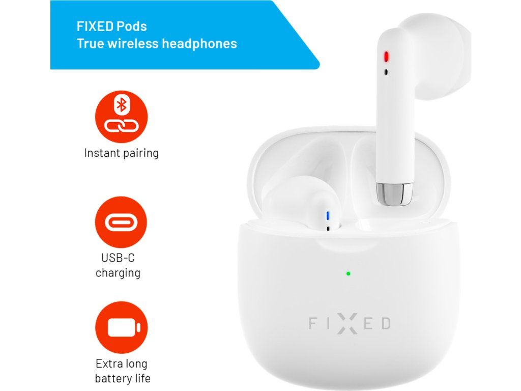 Bezdrátová TWS sluchátka FIXED Pods, bílá