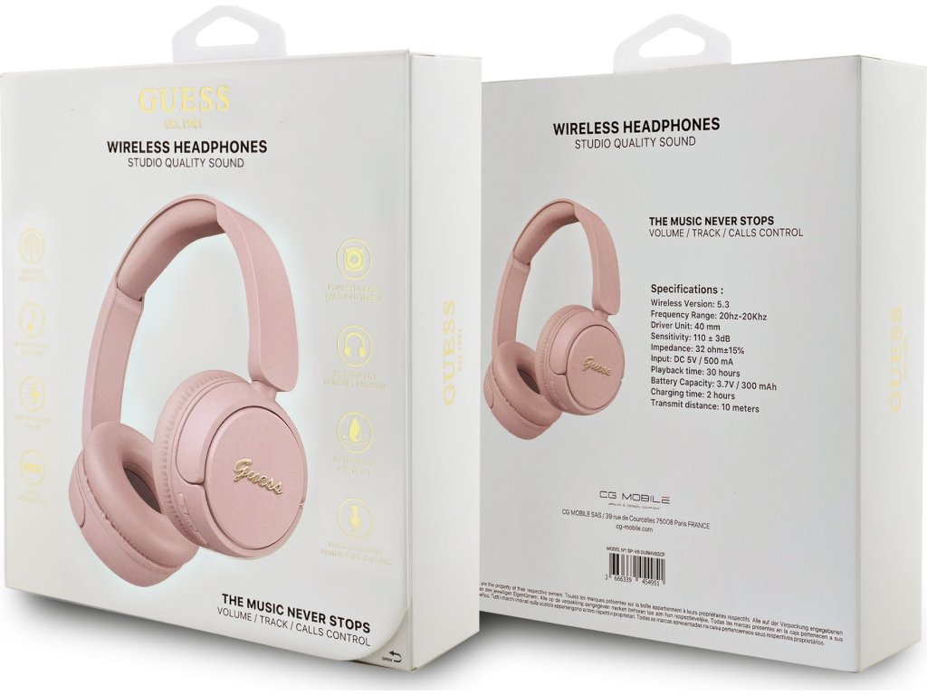 Guess Script Metal Logo Bezdrátová Sluchátka Pink