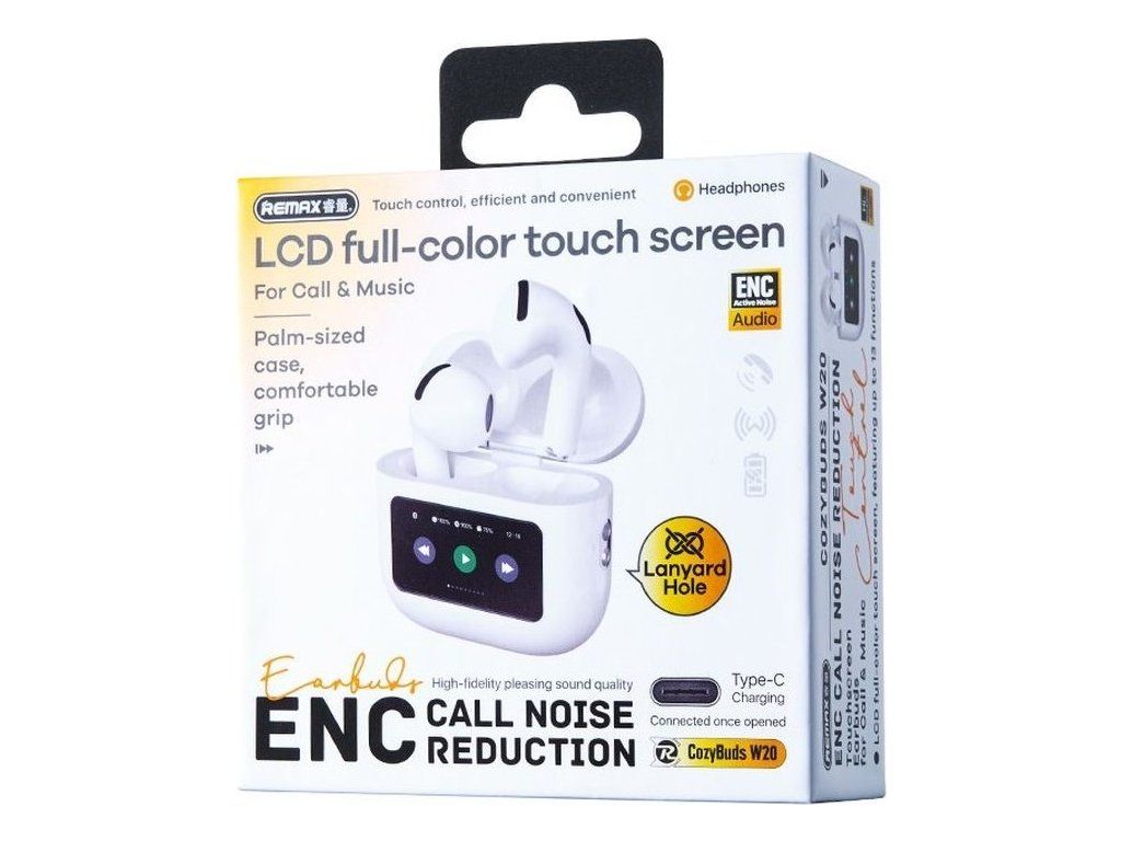 Bezdrátová sluchátka Remax TWS W20 disponují unikátním dotykovým LCD displejem a technologií ANC. Ideální volba pro kvalitní poslech bez okolního hluku.