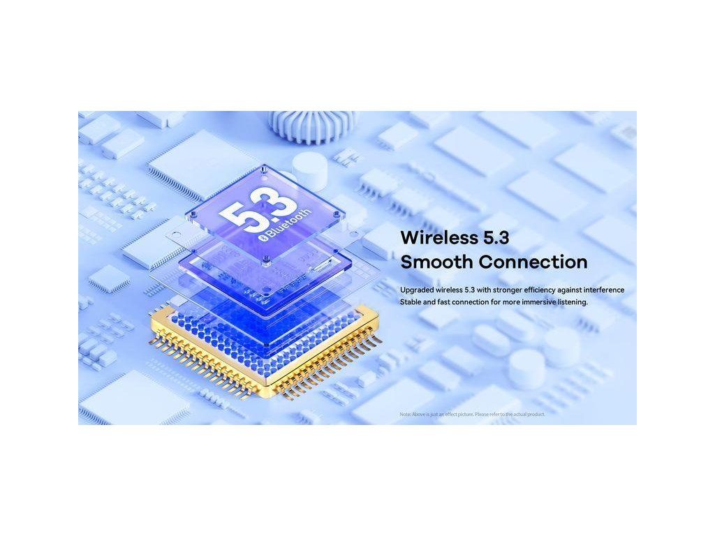 Moderní čip Bluetooth 5.3 zajišťuje okamžité párování a úsporný provoz pro delší výdrž.
