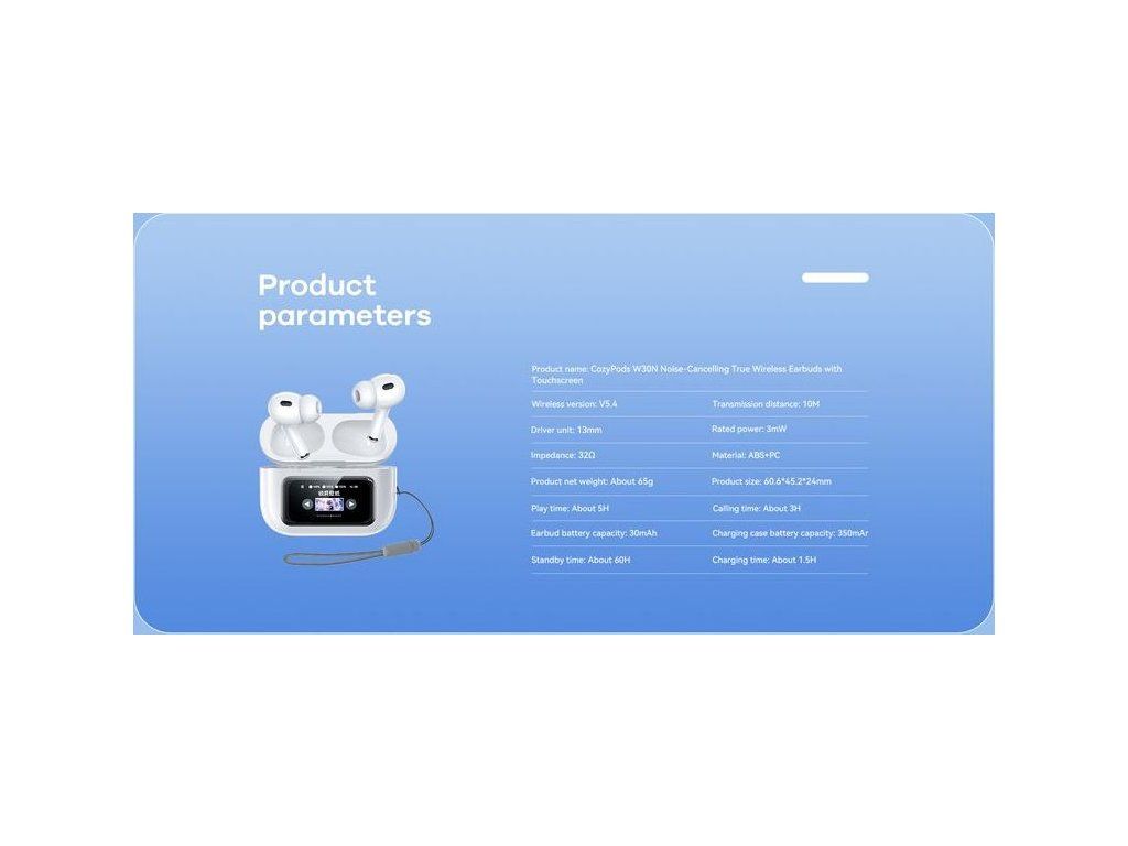 Bezdrátová sluchátka Remax W30N představují novou generaci TWS technologií, které kombinují špičkový zvukový přednes s inovativními funkcemi. Dominantou tohoto modelu je nabíjecí pouzdro s integrovaným barevným LCD displejem, který vám umožní ovládat přehrávání a nastavení bez nutnosti vytahovat telefon.