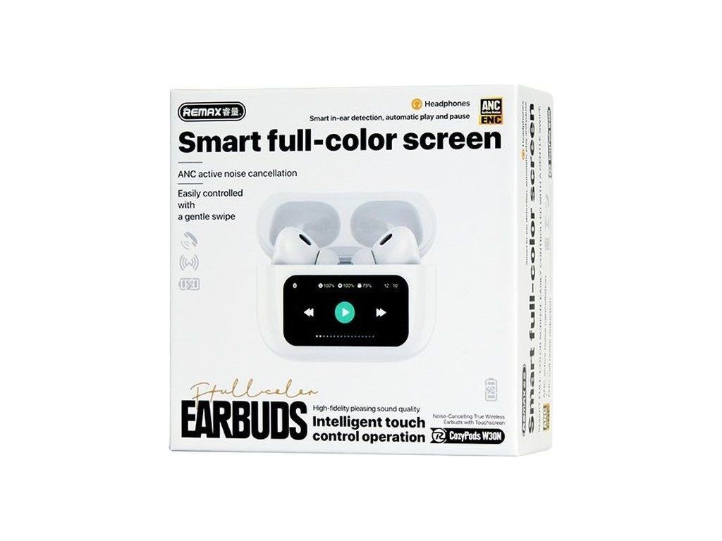 Bezdrátová sluchátka Remax W30N nabízejí aktivní potlačení hluku ANC a unikátní nabíjecí pouzdro s dotykovým LCD displejem. Ideální volba pro technologické nadšence.