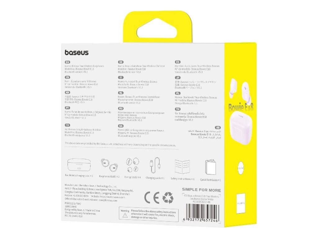Sluchátka TWS Baseus Bowie E18 jsou dokonalým společníkem pro každého milovníka hudby, který ocení svobodu a bezztrátovou kvalitu zvuku. S nabíjecím pouzdrem umožňují přehrávání hudby až 25 hodin a s pokročilou technologií Bluetooth 5.3 nabízejí stabilní a rychlé připojení s dosahem až 10 metrů. Voděodolnost IPX4 znamená, že si hudbu užijete i v deštivých dnech.