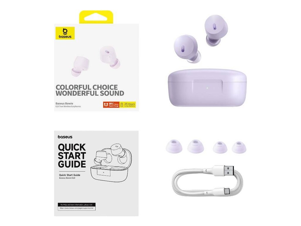Sluchátka TWS Baseus Bowie E18 (fialová).