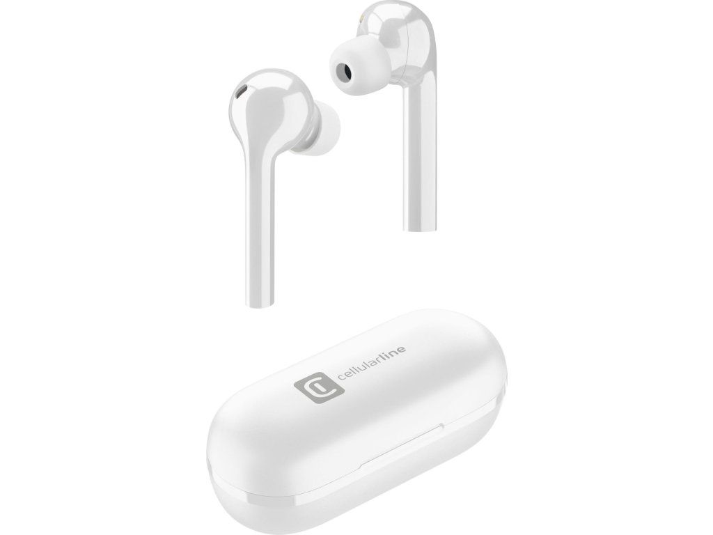 True wireless sluchátka Cellularline Flag s dobíjecím pouzdrem, bílá