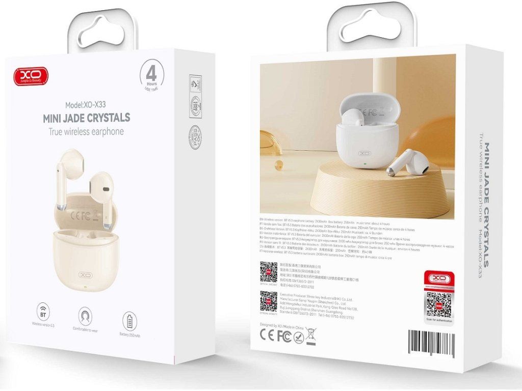 Bezdrátová sluchátka XO X33 TWS v béžovém provedení s technologií Bluetooth 5.3 zajišťují stabilní přenos a čistý zvuk. Skvělá volba pro hudbu i hovory na cestách či při sportu.