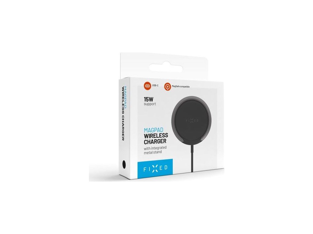 Bezdrátová nabíječka FIXED MagPad s podporou uchycení MagSafe a stojánkem, 15W, černá