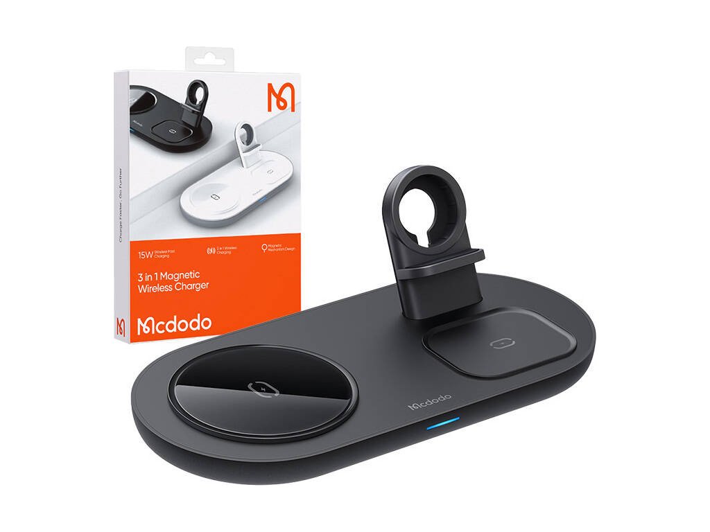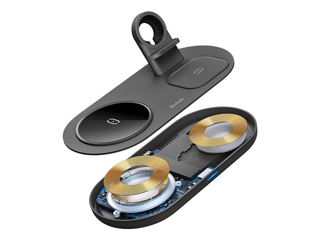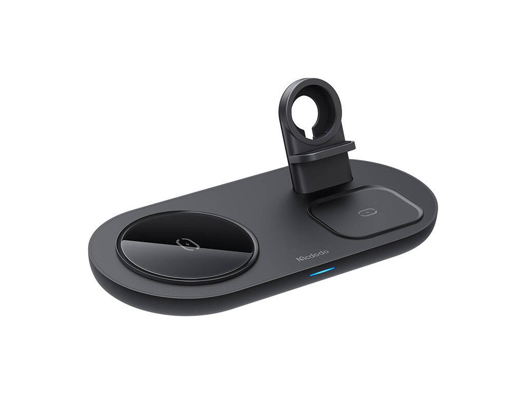 Nyní vám stačí jedna bezdrátová nabíječka k nabíjení až 3 různých zařízení! Model Mcdodo CH-7061 umožňuje bezdrátové nabíjení smartphonu, sluchátek AirPods a hodinek Apple Watch současně. Poskytuje výkon až 15 W a zajišťuje bezpečné používání. Můžete jej úspěšně používat například v obývacím pokoji, kanceláři nebo ložnici.