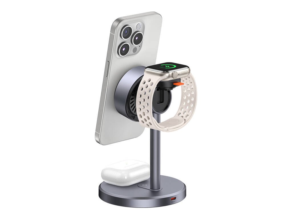 Bezdrôtová nabíjačka 3 v 1 Mcdodo CH-2460 je dokonalým riešením pre tých, ktorí oceňujú pohodlie a poriadok. S jedným zariadením budete súčasne nabíjať svoj smartfón, bezdrôtové slúchadlá a Apple Watch, takže nebudete potrebovať niekoľko rôznych káblov a nabíjačiek. Táto kompaktná nabíjacia stanica dokonale zapadne do každého interiéru. Súčasťou je aj AC nabíjačka, ktorá ponúka 33W nabíjací výkon.