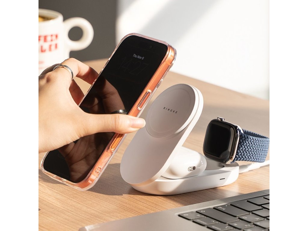 Indukční nabíječka RINGKE QI2.2 25W 3 v 1 je inovativní řešení pro uživatele Apple, které kombinuje elegantní design s výjimečnou funkčností. Tato kompaktní nabíjecí stanice umožňuje současně nabíjet tři zařízení – iPhone, Apple Watch a AirPods – pomocí nejnovější magnetické nabíjecí technologie MagSafe.
