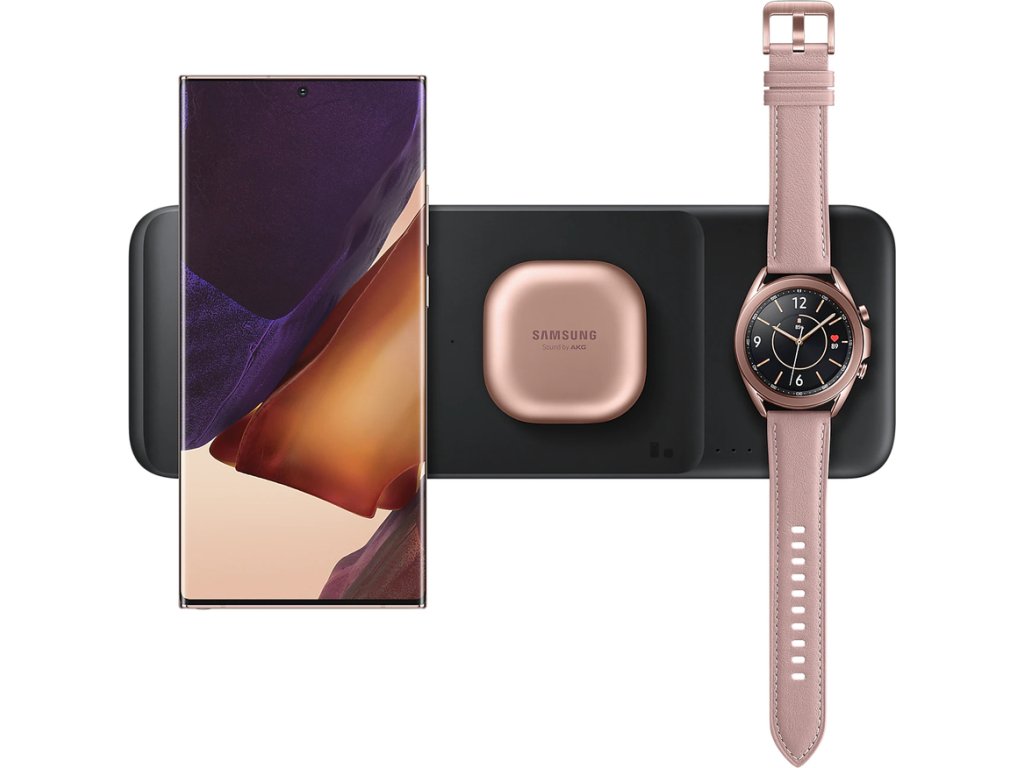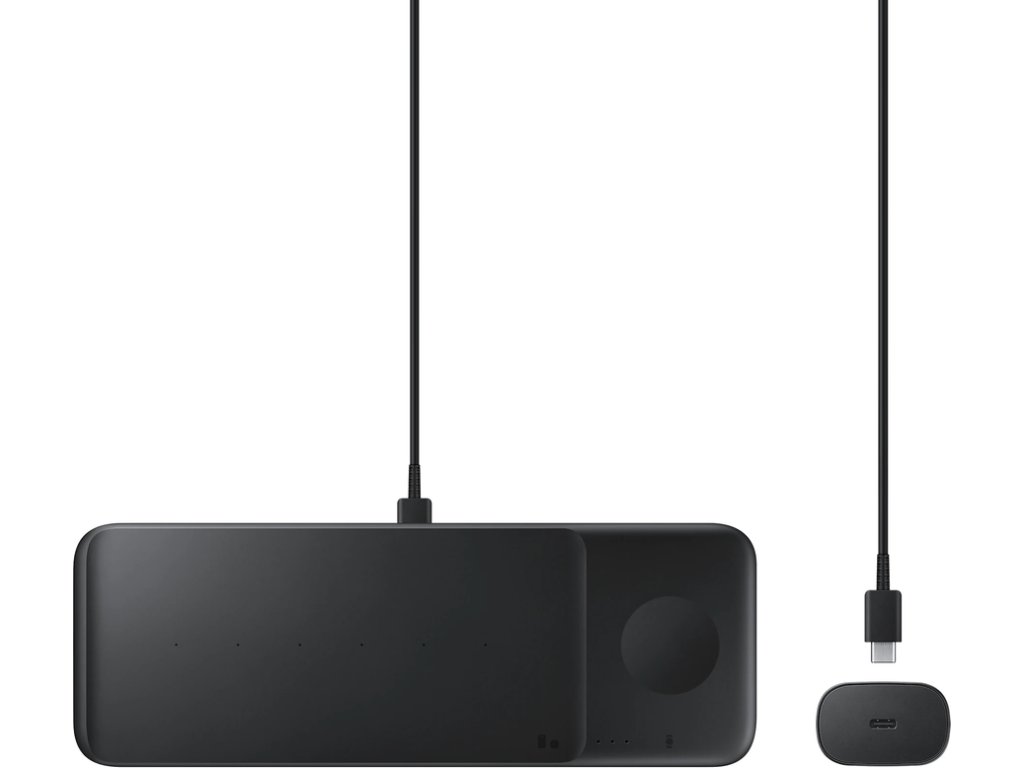 Samsung Trio EP-P6300TBEGEU 3v1 indukční nabíječka pro telefon / Galaxy Watch / Buds - černá + síťová nabíječka + kabel