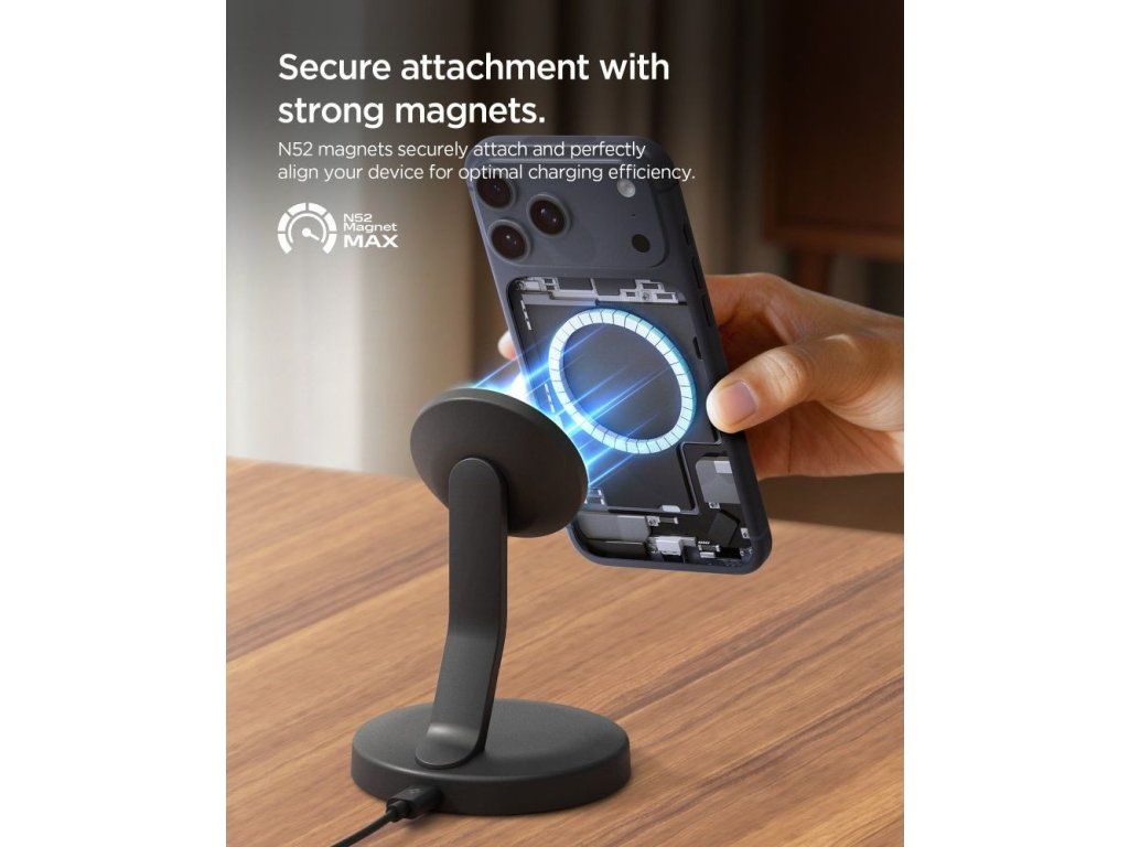 Nabíječka je vybavena magnety N52, které zajišťují mimořádně pevné a stabilní přichycení telefonu během nabíjení. Telefon tak zůstává bezpečně na místě i při běžné manipulaci, dotyku displeje nebo používání během videohovoru.