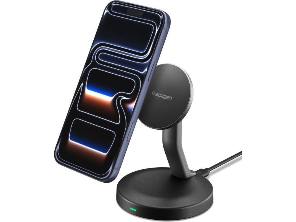 Spigen EF151MS Essential je kompaktní bezdrátová MagSafe nabíječka se stojánkem, která kombinuje pohodlné nabíjení, stabilní magnetické uchycení a praktické používání telefonu během dobíjení. Nabízí výkon až 15 W, silné magnety N52 a ergonomický stojánek s pevným úhlem náklonu 30°, takže je ideální na pracovní stůl, noční stolek i domácí kancelář.