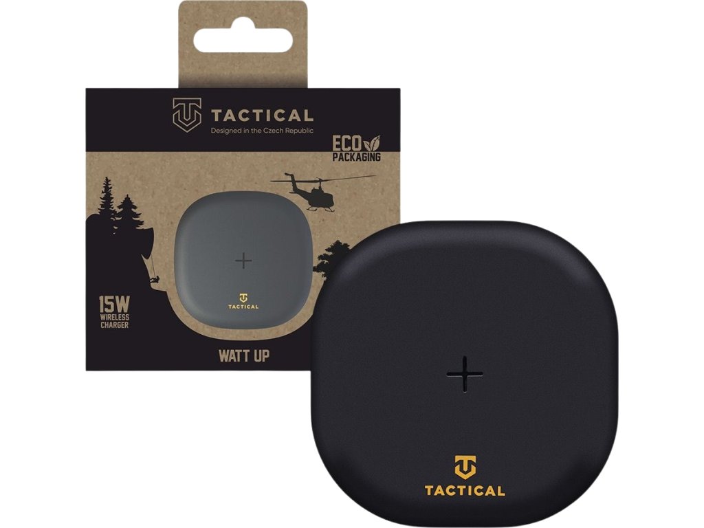 Bezdrátová nabíječka o výkonu až 15W. Dobij si bezdrátově telefon nebo sluchátka. 15W 15W už je skutečně dost na to využít dnešní technologie rychlonabíjení. Díky maximální vzdálenosti nabíjení 8mm tak svůj telefon můžeš v klidu nechat v pouzdře a nabíjet ho v něm. Tactical Watt Up nabije i pouzdro bezdrátových sluchátek. Originální styl Tactical Pečlivě vybrané barvy a styl se odlišuje od ostatních a zároveň doplňuje tvůj jedinečný styl. Vyber si ze dvou barev. Nevšední žlutá nebo sytě černá. NEODOLATELNĚ ODOLNÝ Tento kousek není jen pro parádu. U nás v Tactical dbáme na to, aby věci něco vydržely. Tactical Watt Up byl podroben tvrdým podmínkám a při výrobě jsme použili velice odolné materiály a aplikovali nejnovější technologie pro co nejlepší výstup kvality. BE ECO My v Tactical máme rádi přírodu. Všechny naše produkty jsou balené do ECO krabiček z recyklovaného papíru tak, aby co nejméně zatěžovaly životní prostředí. Mysli takticky!