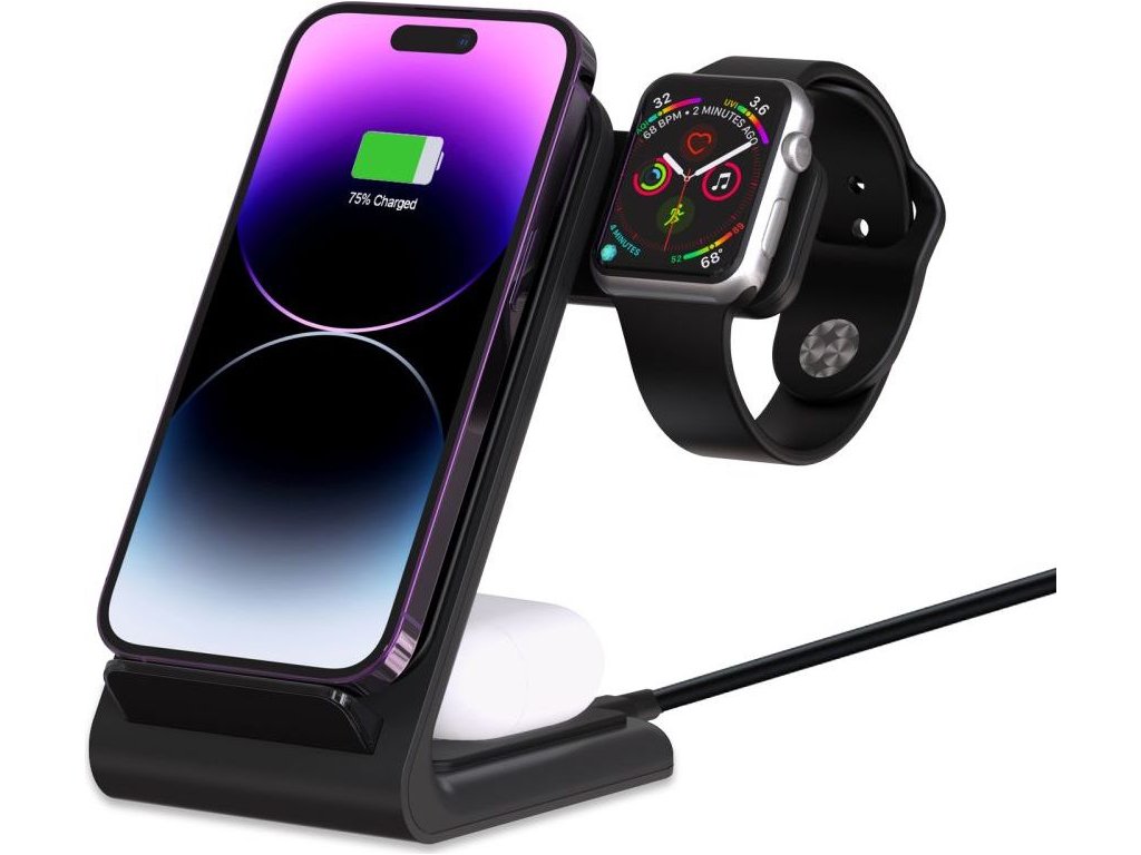 A20 je rychlá a bezpečná nabíjecí stanice, která zvládne nabíjet až tři typy zařízení: chytrý telefon se systémem iOS nebo Android, Apple Watch a sluchátka s funkcí bezdrátového nabíjení, jako jsou Apple Airpods nebo Samsung Galaxy Buds.