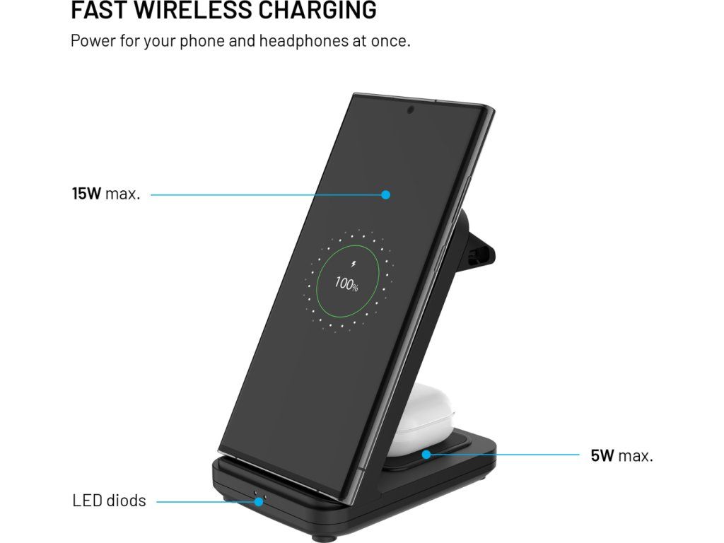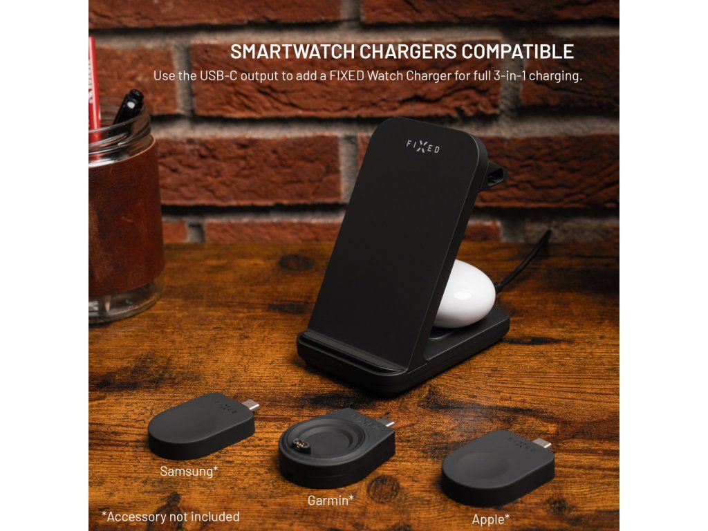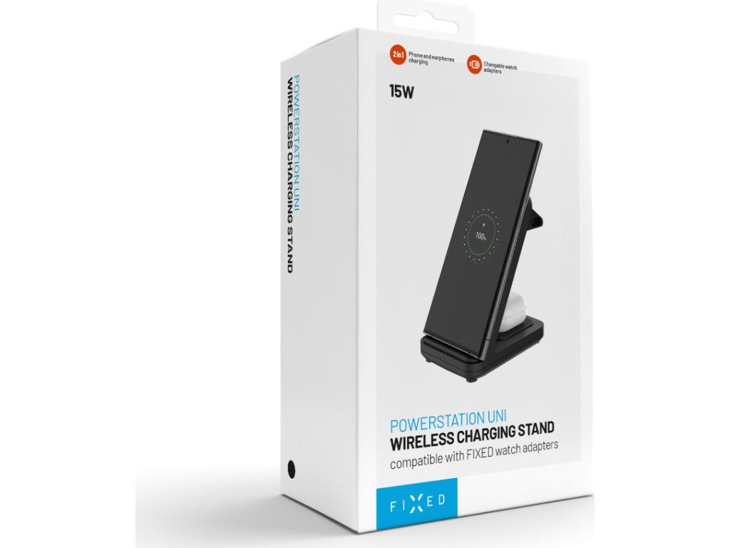 Stojánek FIXED Powerstation Uni s bezdrátovým nabíjením až pro 2 zařízení, 15W+5W, černý