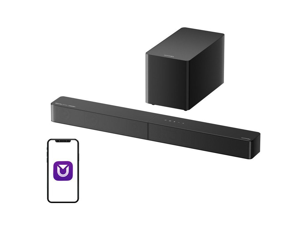 Aplikace Ultimea vám umožňuje spravovat nastavení zvuku přímo z telefonu. Můžete nastavit ekvalizér, vybrat režimy poslechu, přizpůsobit zvuk a aktualizovat software zařízení, aby soundbar odpovídal vašim preferencím.