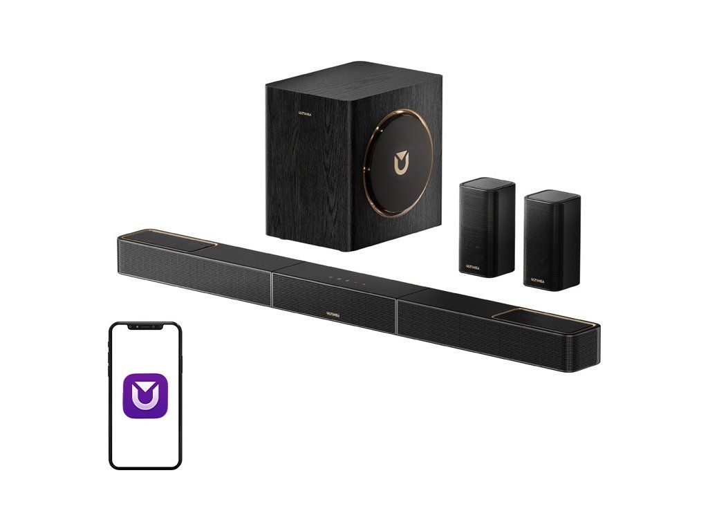 Vylepšené dálkové ovládání poskytuje intuitivní a rychlou obsluhu a speciální aplikace Ultimea vám umožňuje ovládat nastavení zvuku přímo ze smartphonu. Bezdrátové připojení Bluetooth 5.4 nabízí pohodlné přehrávání hudby z mobilních zařízení, díky čemuž je systém univerzálním centrem domácí zábavy.