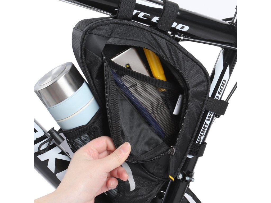 - Poskytuje dobrou viditelnost a pohodlí při jízdě na kole . Brašna je upevněna pod rámem.