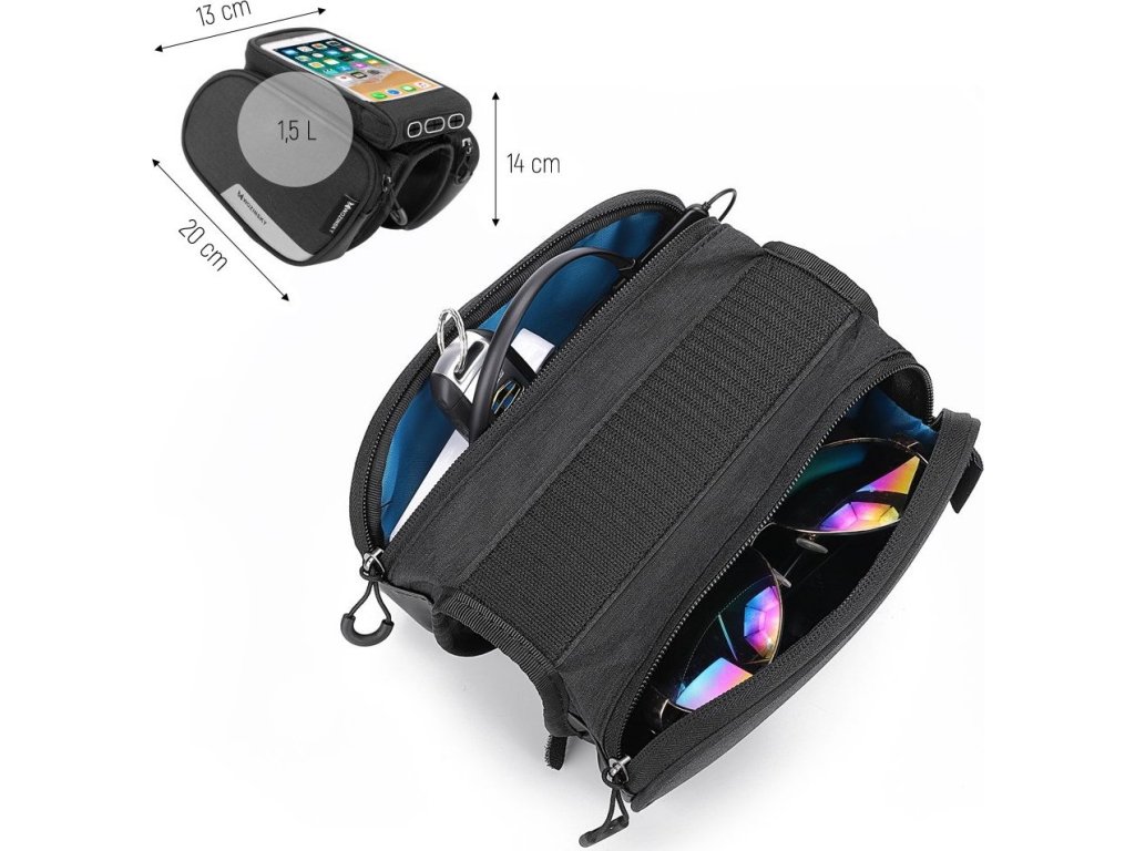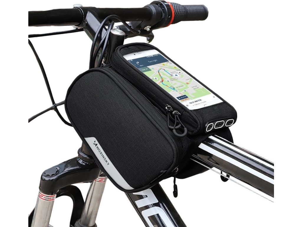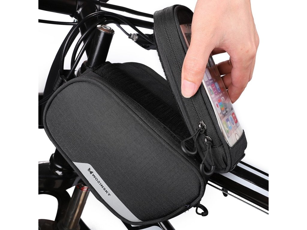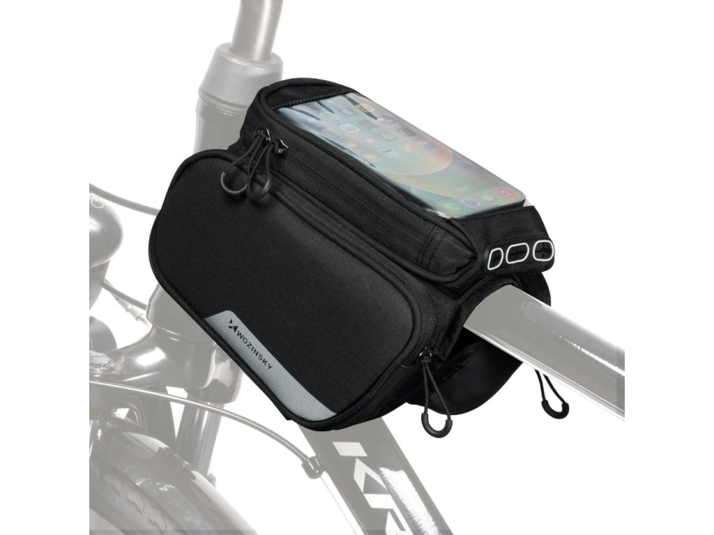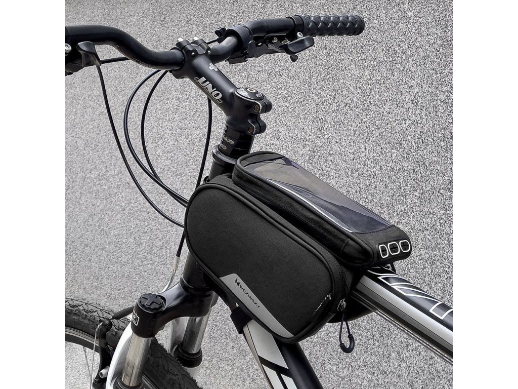 Brašna na rám kola Wozinsky + odnímatelný kryt na telefon do 6,5" 1,5l černá (WBB7BK)