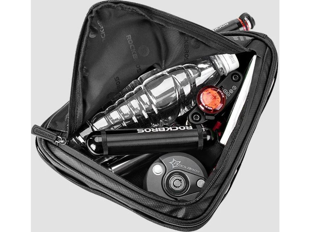 Cyklistický vak Rockbros AS-019-1 na rám, vodotěsný, objem 1,6 l - černý Zapomeňte na kompromisy mezi funkčností a stylem během cyklistických výletů.
