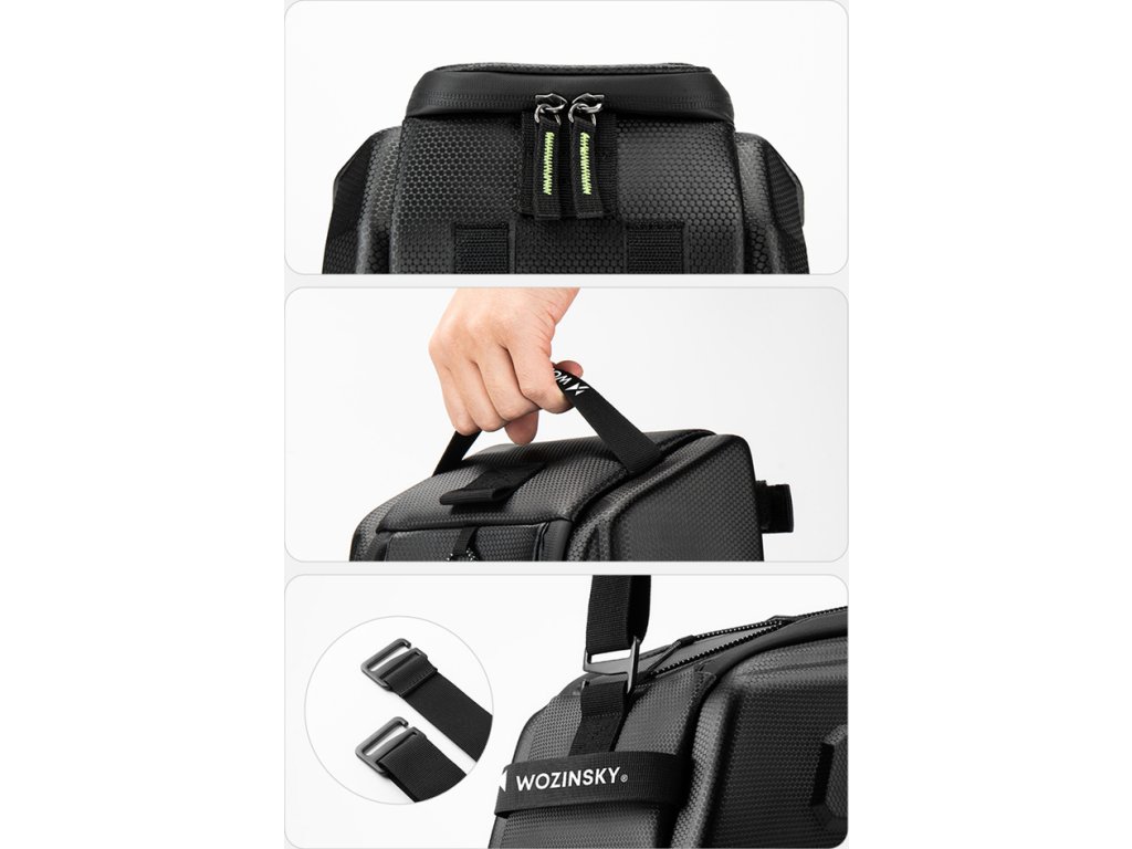 Wozinsky WSR-01B je funkční 9litrová brašna na kolo určená k upevnění na nosič zavazadel. Je ideální jak pro každodenní dojíždění, tak pro delší vyjížďky na kole. Její pevná konstrukce, vodotěsný materiál a promyšlené funkce vám umožní bezpečně přepravovat zavazadla za různých povětrnostních podmínek.