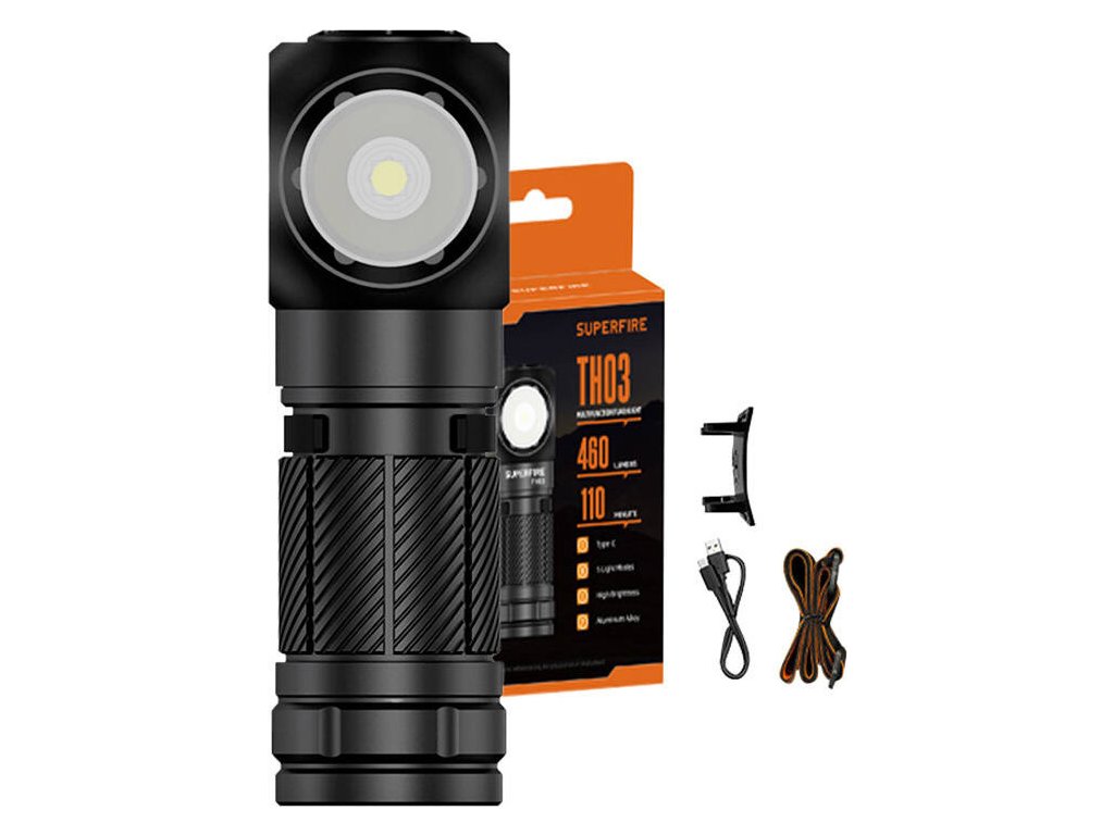 Svítilna Superfire TH03 spojuje funkce ruční svítilny a čelovky, díky čemuž je mimořádně všestranným nástrojem. Díky malým rozměrům (80,5 x 27 x 24 mm) a váze pouhých 58 gramů se snadno přenáší a není zátěží. Flexibilní montážní systém se silikonovým páskem umožňuje bezpečné upevnění svítilny na hlavu, díky čemuž je vhodná pro aktivity jako lezení, kempování a opravy. Svítilna TH03 navíc nabízí 180° nastavitelný úhel osvětlení, který eliminuje slepá místa a poskytuje plné okolní osvětlení.