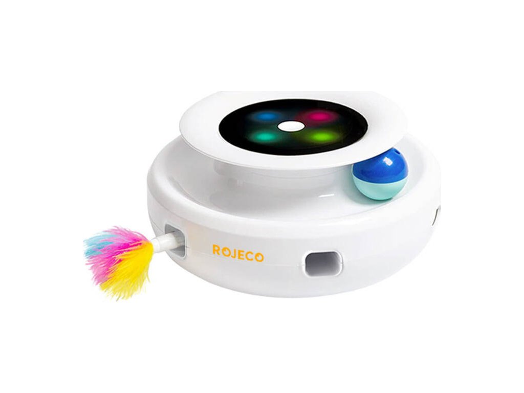 Ujistěte se, že se vaše kočka může skvěle bavit, když jste pryč. Interaktivní hračka Rojeco je vybavena třemi druhy peří v různých barvách, která nečekaně vyskakují ze šesti otvorů a povzbuzují vašeho mazlíčka k lovu. Pro maximální zábavu pro domácího mazlíčka jsou k dispozici také dva míčky, které se otáčí o 360°. To umožňuje čtyřnohým společníkům nejen rozvíjet své instinkty, ale také se více pohybovat. Postarejte se o pohodu svého chlupatého kamaráda s Rojeco!