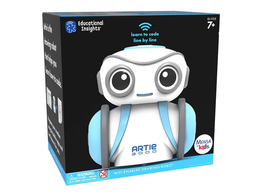 Robot Artie 3000 je skvělým pomocníkem při učení základů kódování, geometrie, matematiky a analytického myšlení. Stačí jej připojit k počítači, notebooku nebo tabletu prostřednictvím Wi-Fi a poté přejít na speciální webovou stránku s uživatelsky přívětivým rozhraním pro programování. Přesouváním dostupných bloků může dítě přimět robota, aby se pohyboval dopředu, dozadu, doleva nebo doprava a zvedal nebo spouštěl značku. Díky tomu bude Artie 3000 kreslit různé tvary a písmena! Vytvořený kód můžete také kdykoli otestovat pomocí simulátoru, abyste se vyhnuli případným chybám. Navíc jsou k dispozici 4 zábavné režimy - výchozí tvary, hry, vybarvování a volné kódování.