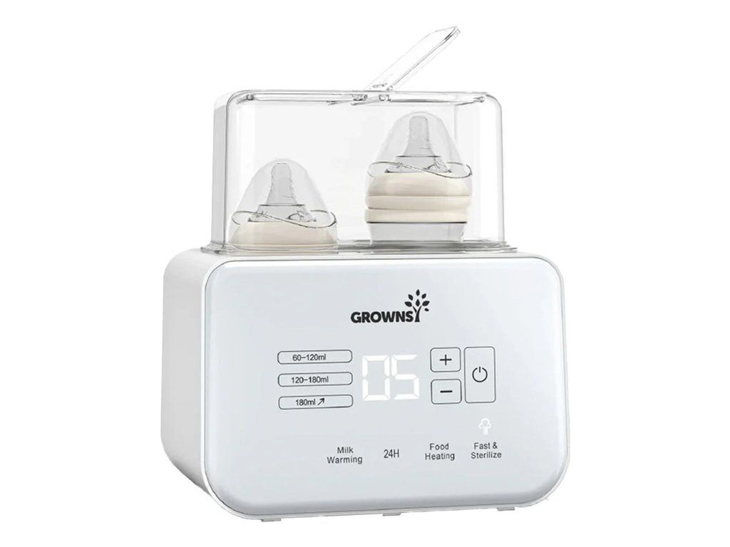 Multifunkční ohřívač lahví Grownsy je praktickým pomocníkem pro rodiče od prvních dnů života jejich dítěte. Kombinuje osm funkcí: rychlé ohřívání mléka, rozmrazování, udržování jídla v teple až 24 hodin, ohřívání jídla, parní sterilizace, časovač, regulace teploty a košík na ochranu před popálením. To znamená, že nemusíte používat několik samostatných zařízení – vždy máte vše, co potřebujete, po ruce, přesně když to potřebujete.