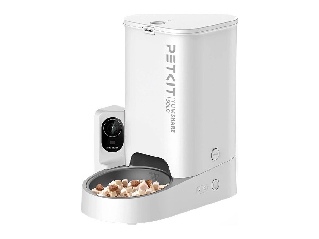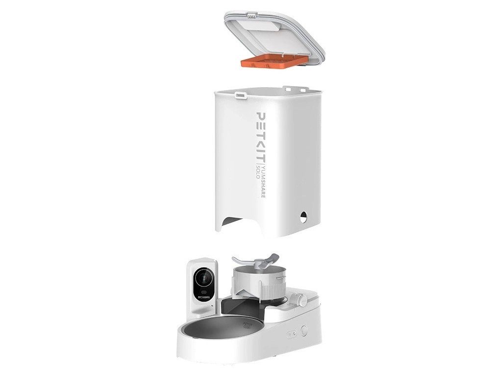 PetKit Yumshare SOLO je inteligentní krmítko pro domácí mazlíčky vybavené širokoúhlou kamerou a obousměrným mikrofonem, které vám umožní nejen pozorovat vašeho mazlíčka, ale také s ním komunikovat a nahrávat. Kamera navíc automaticky detekuje a analyzuje množství jídla, které zůstalo v misce, a na základě výsledků analýzy může zadržet další jídlo, aby se zabránilo překrmování a plýtvání potravinami. S aplikací PETKIT mohou uživatelé plánovat jídla na základě dne v týdnu, množství a velikosti porce. Krmivo lze také vydávat ručně stisknutím a podržením tlačítka umístěného na základně zařízení, čímž je zajištěno, že jej váš mazlíček nemůže stisknout jako tlačítko, které otevírá zásobník na jídlo. PetKit Yumshare SOLO lze napájet dvěma zdroji – elektřinou ze zásuvky, která je primárním zdrojem energie, nebo pěti AAA bateriemi používanými v případě výpadku proudu.