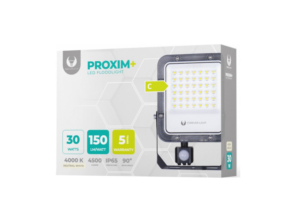 LED světlomet PROXIM+ 30W 4000K 4500lm PIR 230V IP65 Forever Light 150lm/W 5letá záruka