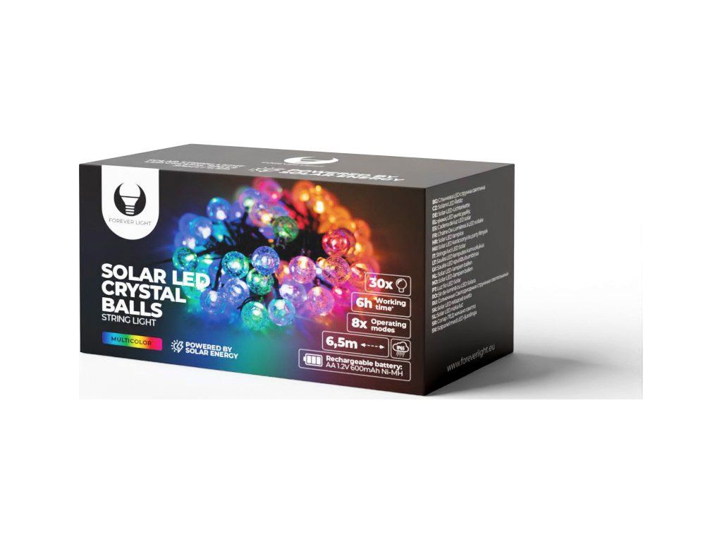 Solární LED řetězová světla KŘIŠŤÁLOVÉ KOULE SCB61 6,5m 30 koulí vícebarevná Forever Light
