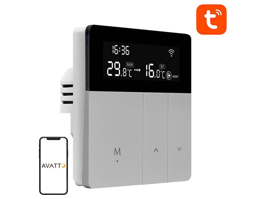 Chytrý termostat Avatto WT50 umožňuje ovládat ohřev vody v domácnosti, kanceláři, hotelu nebo nákupním centru. Připojuje se k chytrému telefonu/tabletu prostřednictvím aplikace Tuya nebo Smart Life a spolupracuje s hlasovými asistenty.