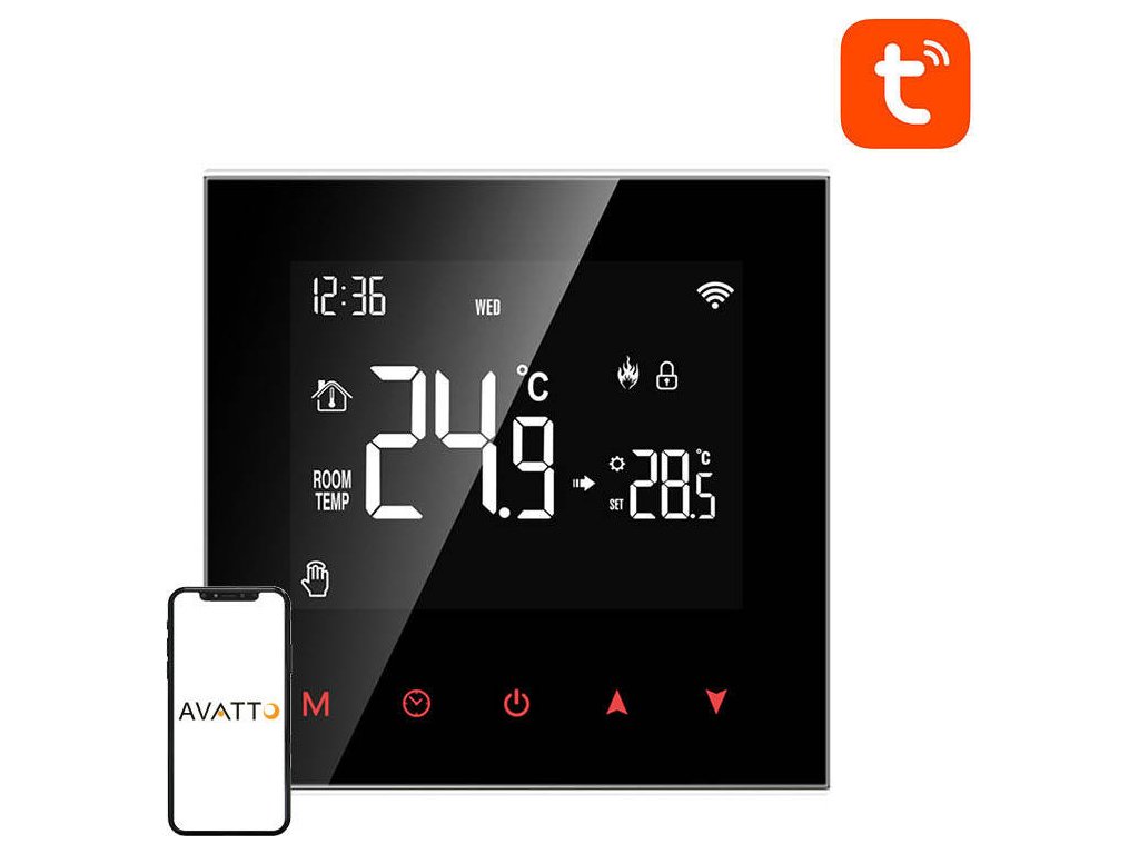 Chytrý termostat Avatto ZWT100 slouží k ovládání vytápění v domácnosti, kanceláři apod. Umožňuje zapnout nebo vypnout pohon, který řídí přívod teplé vody pro vytápění prostor. Má vestavěný modul Zigbee a spolupracuje s aplikacemi Tuya, Smart Life, Amazon Alexa, Google Assistant, Yandex Alice atd.