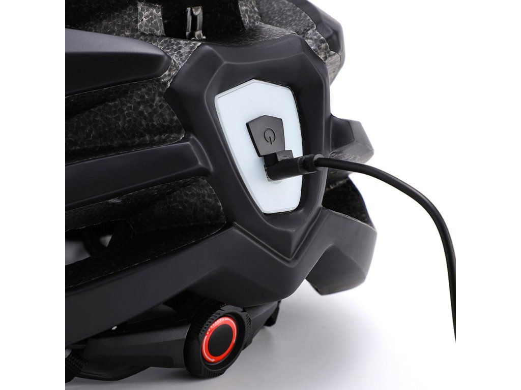 - Ergonomický design. Integrované zadní LED světlo s možností nabíjení přes USB zvyšuje viditelnost jezdce po setmění, zatímco černé barevné provedení a sportovní linie zdůrazňují atraktivitu helmy pro jízdu v terénu.