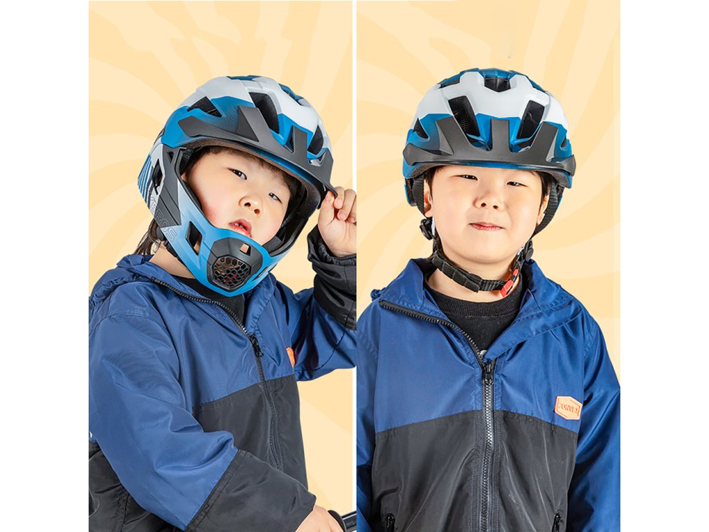 - Typ: Dětská integrální cyklistická helma 2 v 1 (odnímatelná brada)