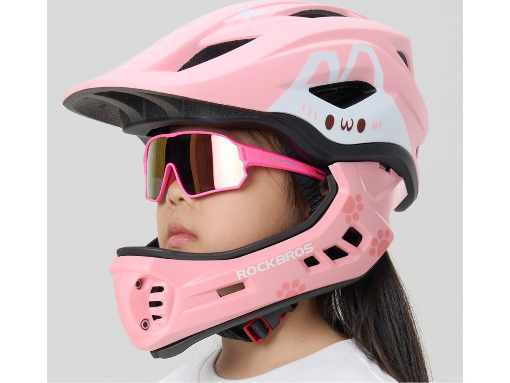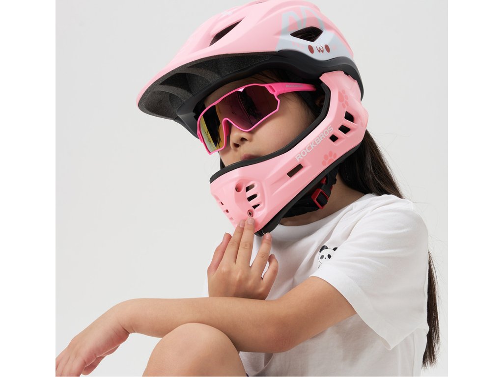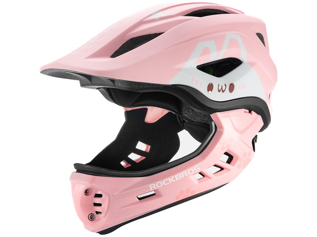 Dětská cyklistická helma Rockbros TT-32001 Rabbit s odnímatelnou bradou, velikost S (48-52) - růžová