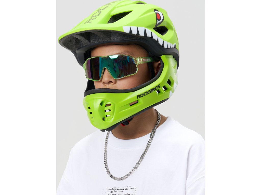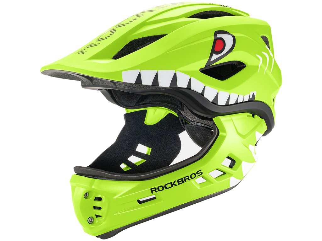 Dětská cyklistická helma Rockbros TT-32004 Shark s odnímatelnou čelistí, velikost M (54-58) - zelená