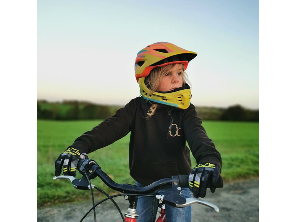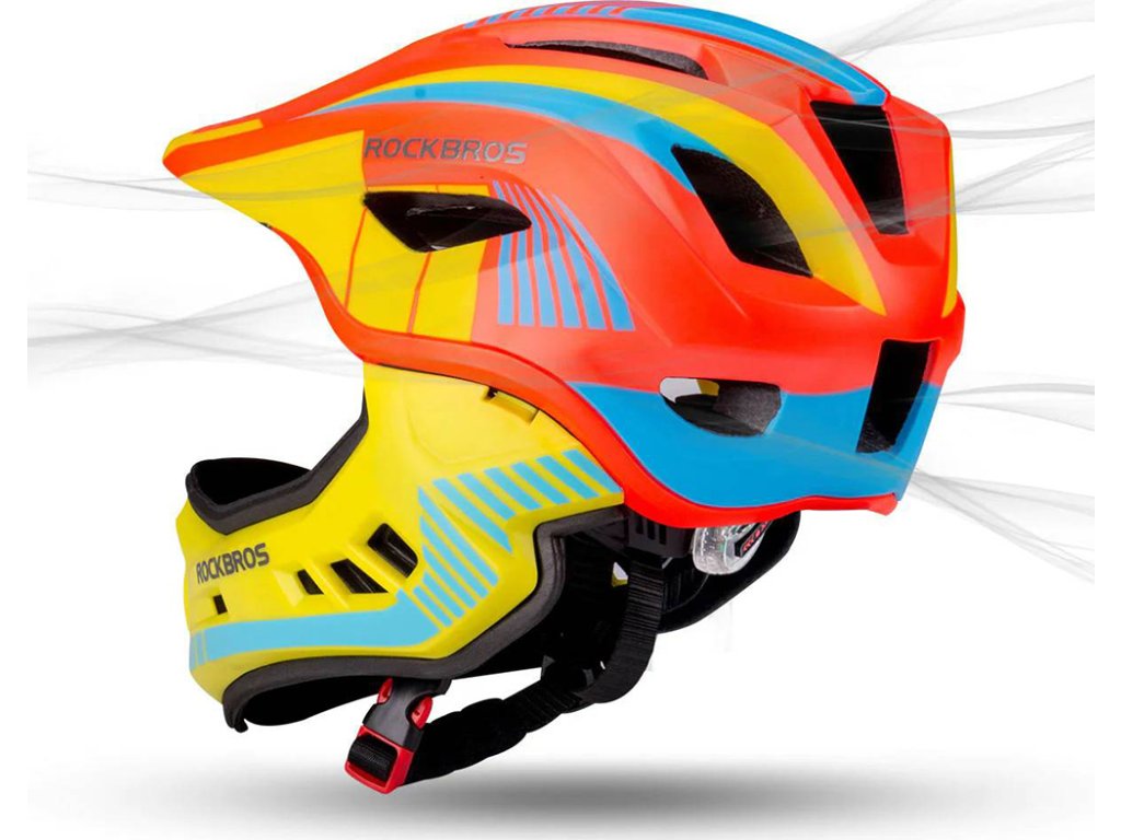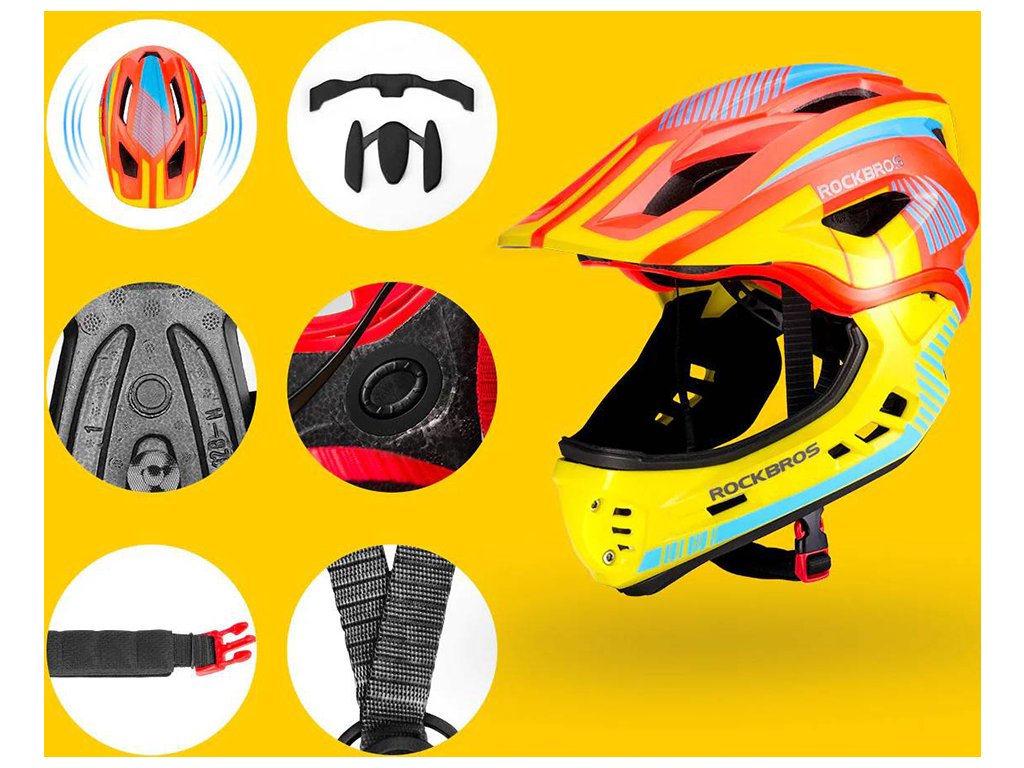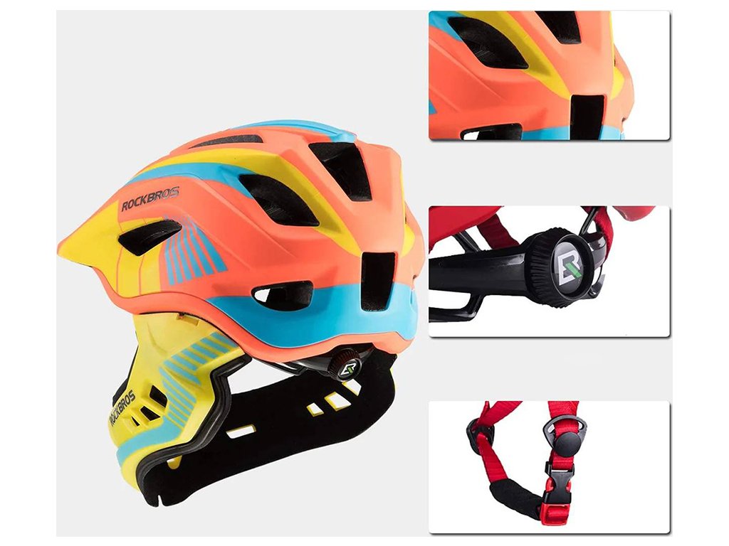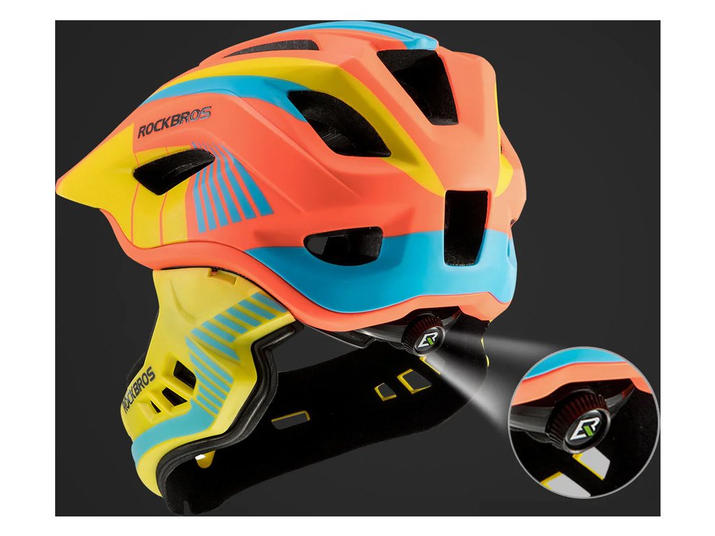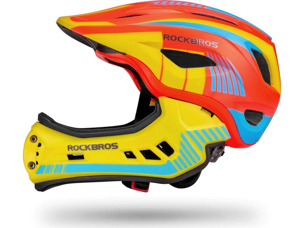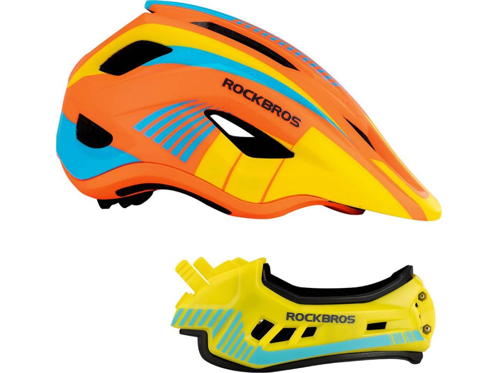 Dětská cyklistická helma Rockbros TT-32SOYB-M s odnímatelnou bradou, velikost M - žlutooranžová