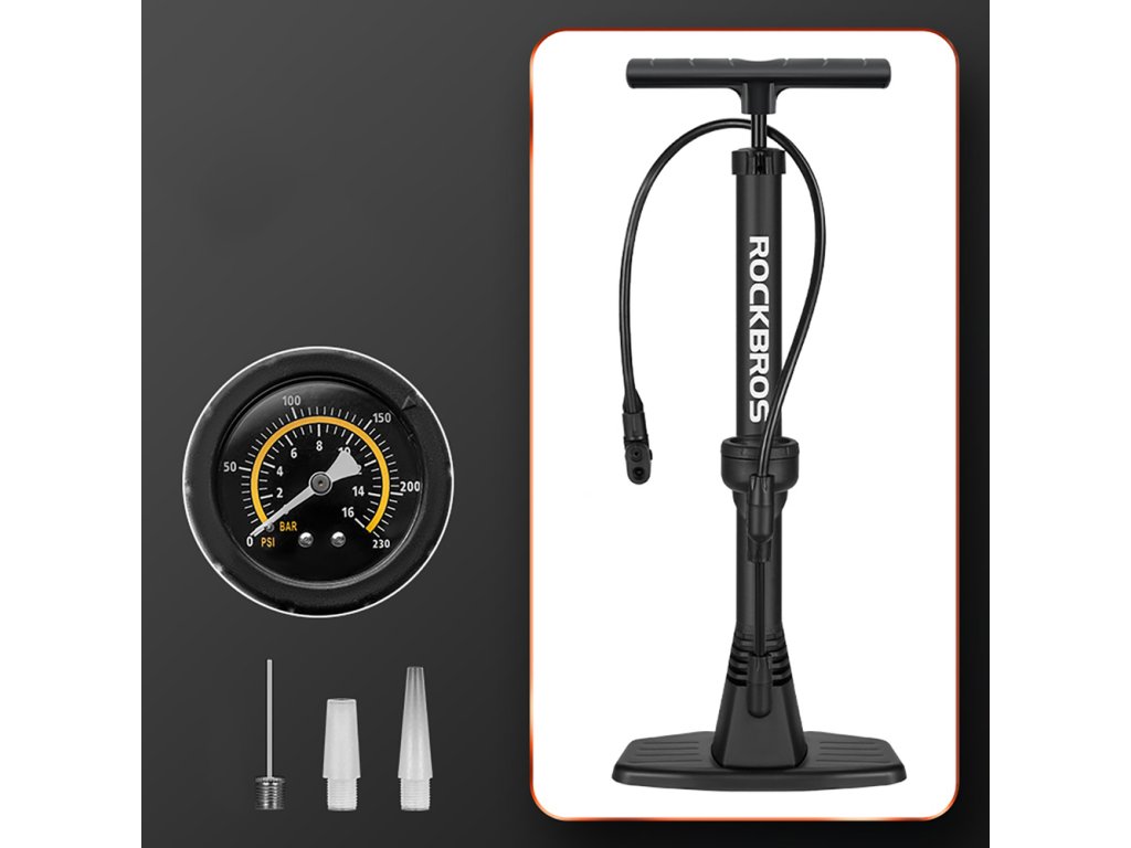 Rockbros 42310006001 pumpa na kolo s manometrem - černá Zde je inovace v oblasti huštění pneumatik: pumpa na kolo Rockbros 42310006001.